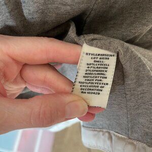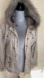 Cute and cozy! Lightweight and packable. Very soft. Beige/light brown exterior. Lined in a very soft cotton fabric. Detachable fake fur hood. Button down front closure. Chest and small hand pockets in the front. Adjustable waist tie. Relaxed fit.