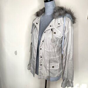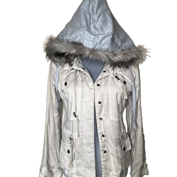 Marrakech Beige Faux Fur Lined Hood Jacket Size XS Brown Utility Cargo Packable