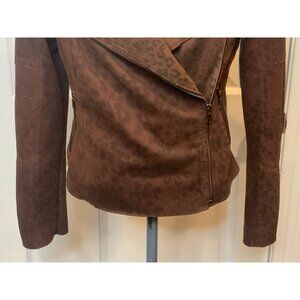 Marrakech Dark Brown Leopard Print Asymmetrical Zip-Up Moto Jacket, Size S
