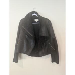 Marrakech Marissa Sherpa-lined BLACK Faux Leather Moto Jacket Size Large