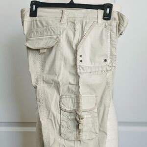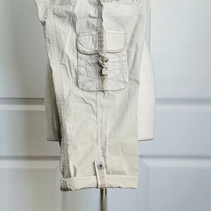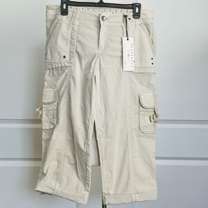Marrakech Pants Capri Stretch Poplin Cargo Convertible Lightweight Ecru 30 NWT