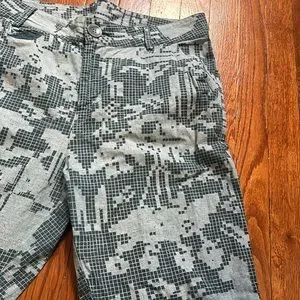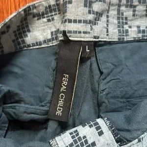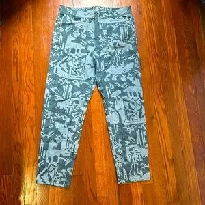 These denim pants are very unique! The pattern is based off of the mapping of Mars done by the Rover. They fit wider up top and come to a tapered leg. High rise and very rare. Can be rolled. The material is very comfortable. This is a smaller boutique brand so you know you’re getting an unusual piece!