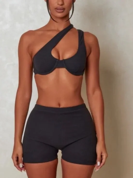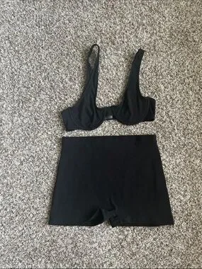 Mars The Label Ribbed Short Set in Black featuring asymmetrical top and high waisted shorts. Excellent condition!