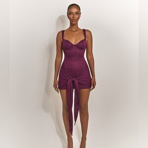 Mars The Label TIE FRONT LACE MINI IN PLUM - UK SIZE 4/ US SIZE 0
