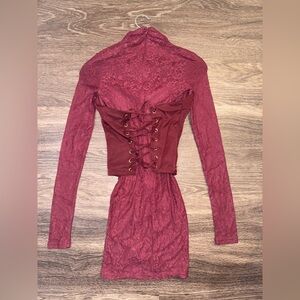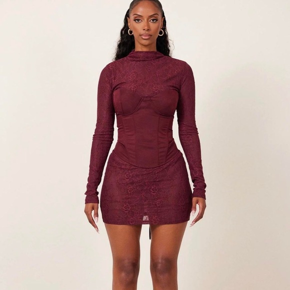 NWOT (Never worn, but tags removed). Size 4. Burgundy lace mini dress with corset. Corset has zipper on side. Perfect for any holiday party, NYE, or birthday party!