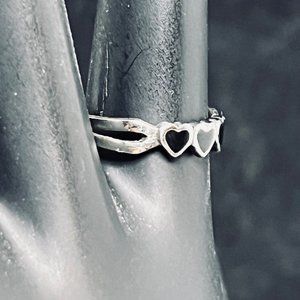 Vintage Marsala Company Sterling Silver W/Black Enamel Hearts Adjustable Toe Ring. It is signed M 925.