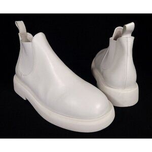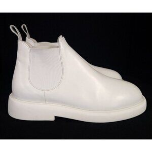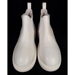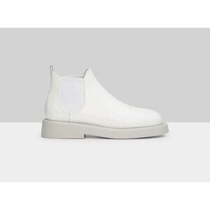 Marsèll Gomme chelsea ankle boot in a white leather grounded on a white colored chunky rubber sole. This round toed boot features elastic side panels and a pull tab at back ankle for slip-on ease.