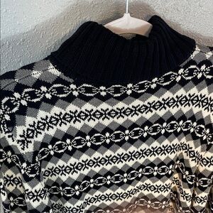 Marsh Landing Fair Isle Knit Sweater – Black & White Turtleneck Pullover Size L