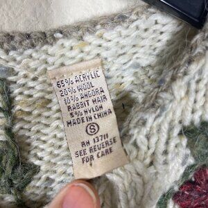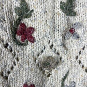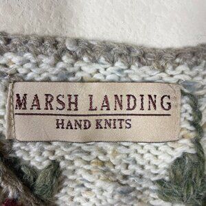 Marsh Landing Hand Knit Floral Ivory Wool Blend Sweater S Oversized!