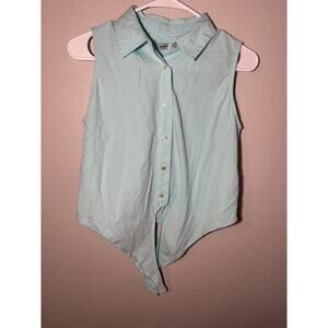 A classic and casual sleeveless button-up top with a charming tie-front detail.