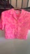 Bright pink floral design. Short sleeves with button closure. Casual and stylish.