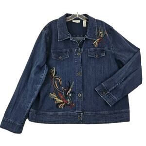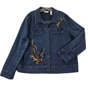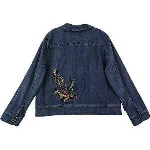 Marsh Landing ~Woman Size XL~ Blue Denim Jean Jacket Embroidered Boho Beaded.