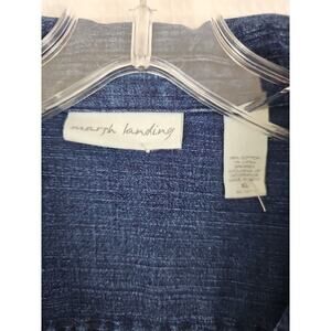 This woman's jacket is perfect for casual occasions and can be worn in summer, fall, and spring. It is machine washable and has a regular fit. The jacket is XL in size and has a solid pattern. The jacket is not handmade and is not personalized. Add a touch of bohemian style to your wardrobe with this beautiful Marsh Landing jacket.