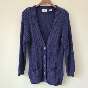 Marsh Landing Womens Cardigan Small Navy Chunky Knit Fisherman Grandpa Classic