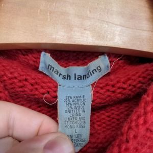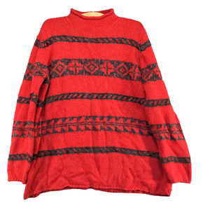Marsh Landing Women's Tunic Knit Sweater Red Large Fair Isle Pattern Mock Neck