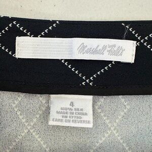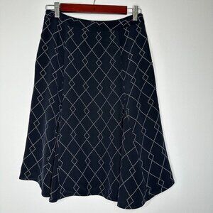 Marshall Fields Black Diamond Print Flare Knee Length Silk Skirt Size 4