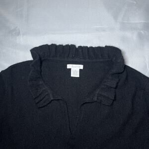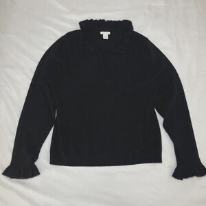 Marshall Fields Womens Cashmere Split Neck Sweater Size XL Black Ruffles *READ*