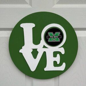 Marshall “LOVE” The Herd 3D Wood Decor Sign - Hang on Front Door, Porch Wall etc