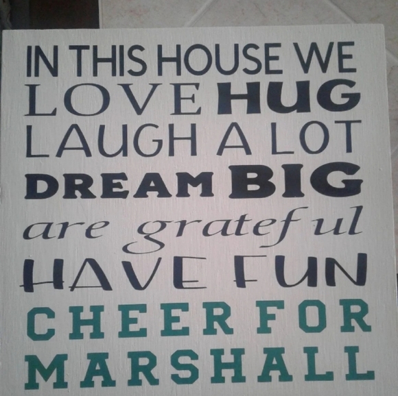 Wooden painted Marshall sign with Black and Green vinyl lettering