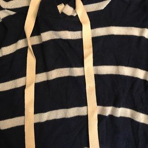 soft, navy with white stripes, cute hood, and is perfect with leggings