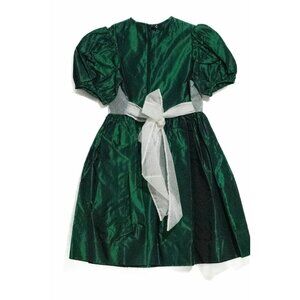 Marshmallow Baby Girl Emerald White Fit & Flare Dress Tie Crewneck Puff Sleeve 7