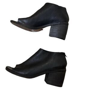 Step into luxury with these authentic Marsèll black leather open-toe ankle boots, expertly crafted in Italy. Designed with a chunky block heel for comfort and stability, these booties feature a soft leather upper for a luxurious feel, a stylish back zipper for easy wear, and a modern minimalist silhouette that pairs with everything from jeans to dresses. • Brand: Marsèll