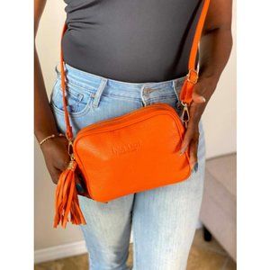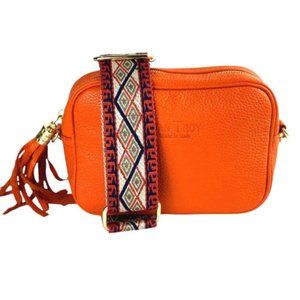 Marta Orange Leather Crossbody Camera Tassel Shoulder Bag, Stylish Purse