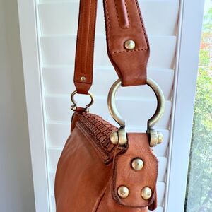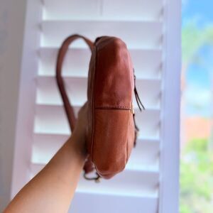 Genuine leather shoulder bag with charming vintage old world bohemian style and beautiful details