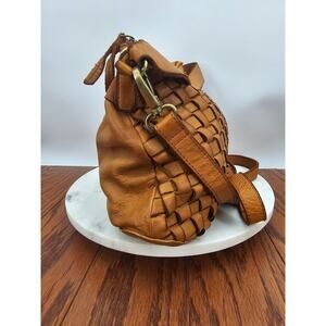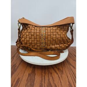 Marta Ponti Imported Genuine Leather Woven Hobo with Studded Detail