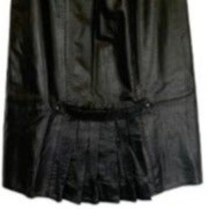 - FEATURES Vintage leather skirt has beautiful pleated detail on the back. It;s perfect for casual wear, or fancier affairs. Below the knee length with a classic silhouette. Pairs well with sweaters, tops, classic heels or boots.
