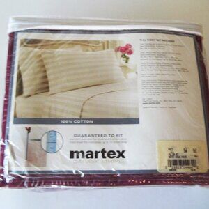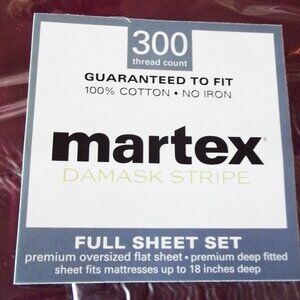 New Martex Damask Stripe Full Sheet Set, Burgundy, Cotton Deep Pocket, 300 Thread Ct
