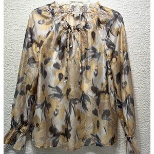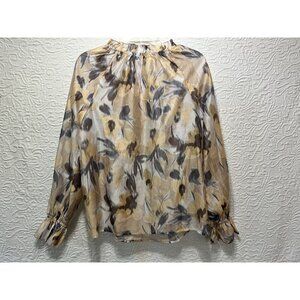 Martha Stewart Abstract Floral Sheer Blouse Top Womens Size Small Neutral Colors