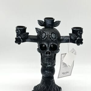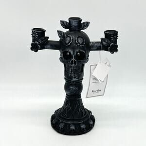 Martha Stewart Black Skull Candle Holder Candelabra LED Eyes Halloween Gothic