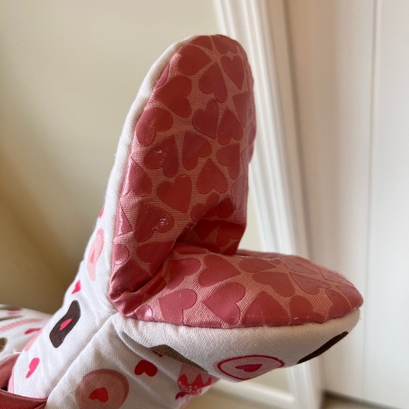 Candy and hearts! Set of Martha Stewart. Apron has pockets and adjustable neck. Set of two oven mitts. With grippy hearts inside!