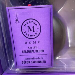 Add a chic and spooky accent to your décor with this Martha Stewart set of 3 ceramic pumpkins, finished in black glitter. Measuring approximately 3 inches each, these mini pumpkins are perfect for mantels, shelves, or table centerpieces. Ideal for Halloween or fall decorating, they bring a touch of sparkle and elegance to any space. Item is brand new in box, though the box may show light wear.