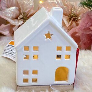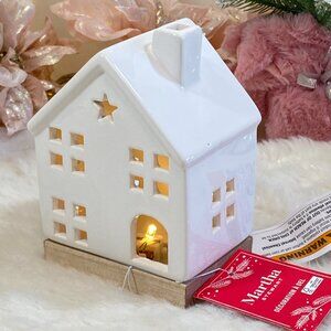 Martha Stewart Christmas CERAMIC PIERCED LED LIGHTED Village House Wood Base New