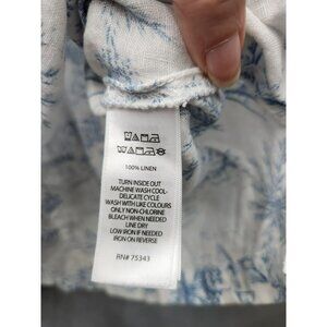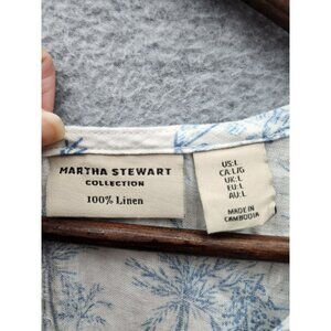 Martha Stewart Collection 100% Linen Blue & White Graphic Print Womens Top L