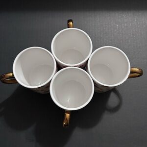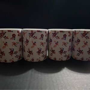 This is a set of four lovely Martha Stewart Collection floral mugs in the Harvest color. Perfect for your morning coffee or tea, these mugs are made of high-quality. feature a beautiful floral pattern. They come in a set of four, so you can enjoy them with your family or friends.