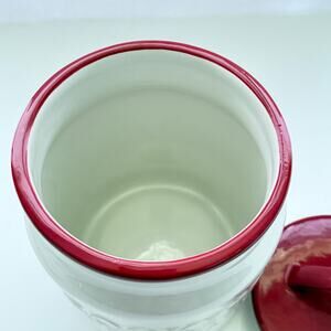 A cheery addition to your kitchen, the Martha Stewart Collection Homemade Cookies jar adds a vintage-inspired accent to a countertop during the holidays or year-round. Lift the red lid to reveal room for cookies and baked treats.