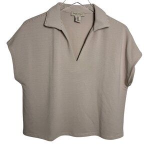 Martha Stewart Collection Women’s Size Medium Collared Knit Top Tan White Stripe