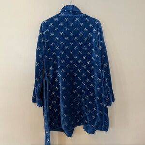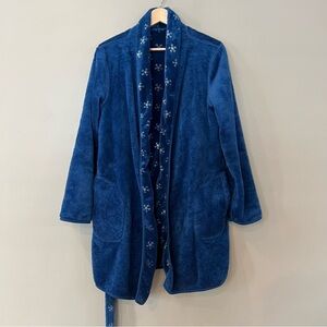 Martha Stewart Fleece Robe OSFM Reversible Blue Snowflake Metallic Silver