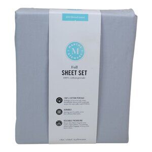 Martha Stewart Full Sheet Set 200 Thread Count Cotton Percale Gray