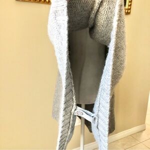 Martha Stewart Gray Wool Cashmere Silk Blend Hoodie Poncho