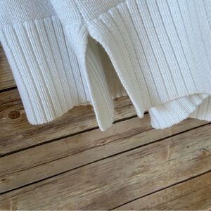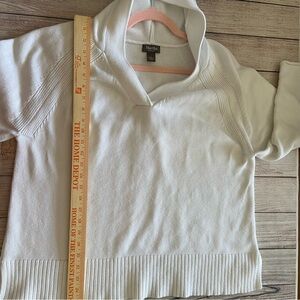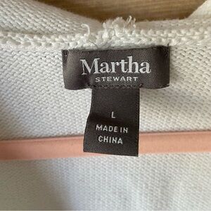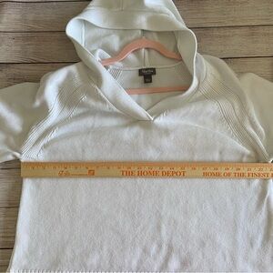 Martha Stewart Hooded White Sweater V Neck Large Pull Over Beachy Chunky