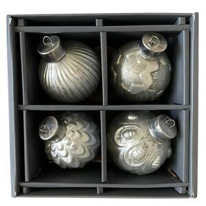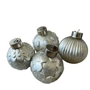 Martha Stewart Illuminated Glass Christmas Ornament Set 4pc Holiday Silver
