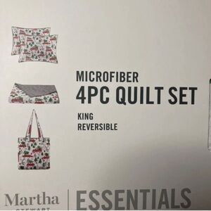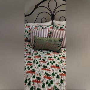 Martha Stewart King Reversible Christmas Truck Quilt w/tote+ shams NEW