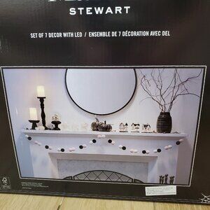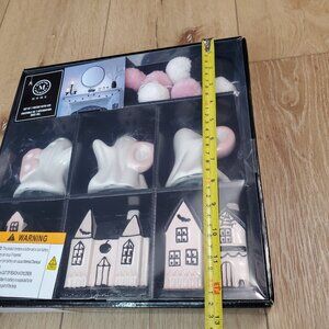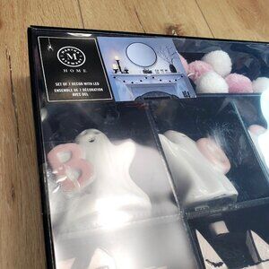 Martha Stewart LED Halloween Pink Haunted House Ghosts Pompom Garland 7pc Set