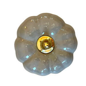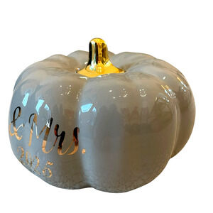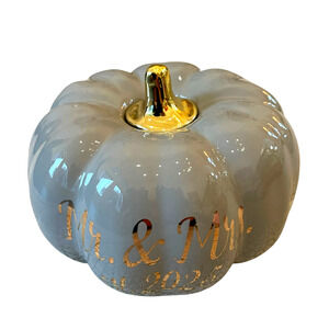 Martha Stewart MR. & MRS. EST 2025 Ceramic Pumpkin Taupe Gold Stem Small NEW