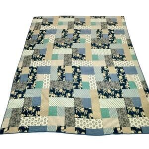 Martha Stewart Collection Patchwork Quilt Full Queen Blue Floral Cotton Reversible