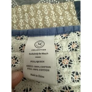 Beautiful patchwork quilt from the Martha Stewart Collection, sold exclusively at Macy’s. Features a mix of blue, tan, gray, and soft green floral and geometric prints for a cozy vintage-inspired look. Fully reversible with a coordinating floral pattern on the back.
